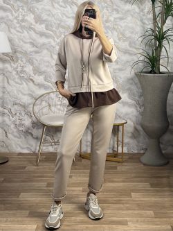 Σετ ελαστικές φόρμες ONE SIZE. Καλύπτει μέχρι 130cm στήθος, 110cm μέση και 130cm περιφέρεια . Το παντελόνι έχει λάστιχο στη μέση και τσέπες. Η μπλούζα έχει κουκούλα και διπλό τελείωμα σε άλλη απόχρωση και διαθέτει και διπλό δίχρωμο κορδόνι.