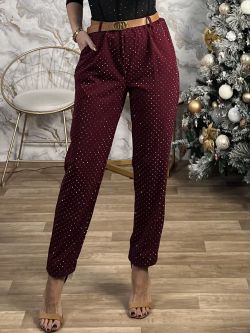 Ελαστικό viscose σετ με μπλούζα και παντελόνα, ONE SIZE. Καλύπτει 140cm στήθος, 110cm μέση και 130cm περιφέρεια. Η μπλούζα έχει διακοσμητικές πέρλες στα μανίκια. Το παντελόνι έχει λάστιχο στη μέση με κορδόνι, τσέπες και διακοσμητικές πέρλες στο πλάι.