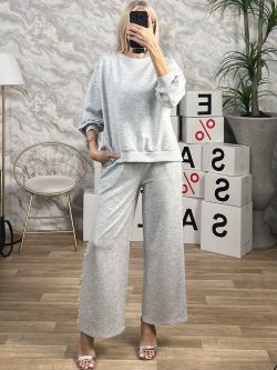 Ελαστικό viscose σετ με μπλούζα και παντελόνι, ONE SIZE. Καλύπτει 130cm στήθος, 120cm μέση και 140cm περιφέρεια. Η μπλούζα έχει χρυσοκλωστή στο μανίκι. Το παντελόνι έχει ρίγες από χρυσοκλωστή στο πλάι, λάστιχο στη μέση και τσέπες.