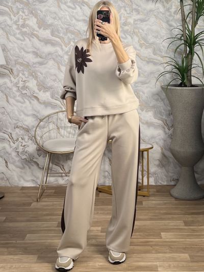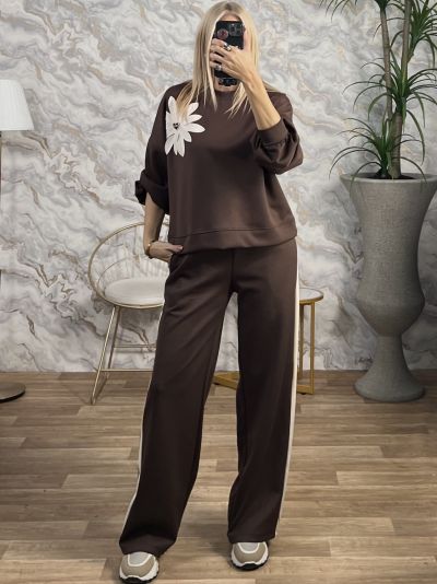 Ελαστικό viscose σετ με μπλούζα και παντελόνι, ONE SIZE. Καλύπτει 150cm στήθος, 110cm μέση και 140cm περιφέρεια.Η μπλούζα έχει κουκούλα και κορδόνι leopard. Το παντελόνι έχει διπλό λεοπάρ λάστιχο στη μέση και κορδόνι.